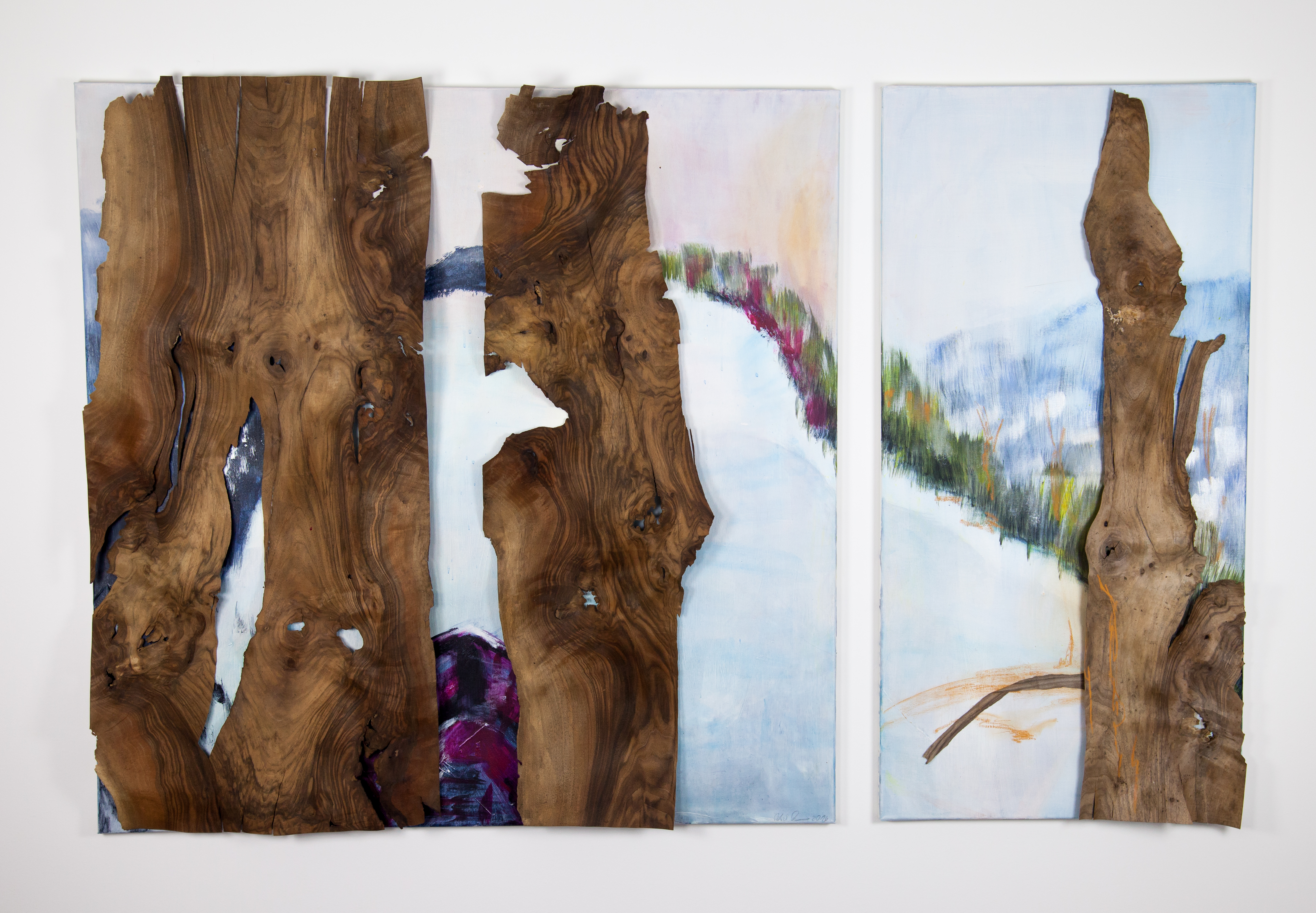 Nussholz mit Acryl auf Leinwand 100+50x100cm 2017